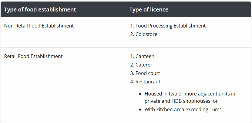 Currently, the food establishments listed below must appoint an FHO for each premises before a license can be issued.